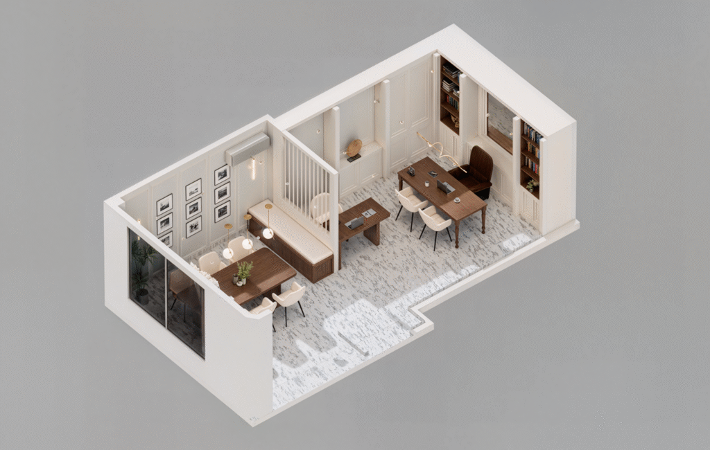This type of rendering helps your clients or investors easily understand spatial flow, furniture arrangement, and room functionality — no architectural background needed.